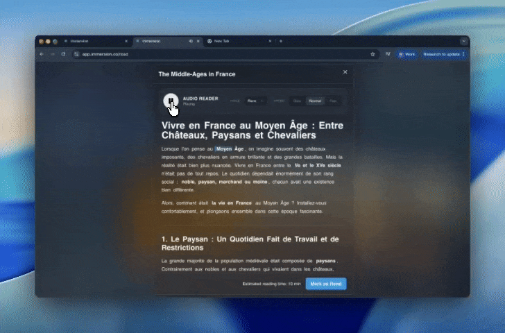 Master French through content designed to keep you engaged and help you absorb the language naturally. With hours of real-life context, you'll gain more than vocabulary — you'll develop fluency. We offer both videos and reading materials.